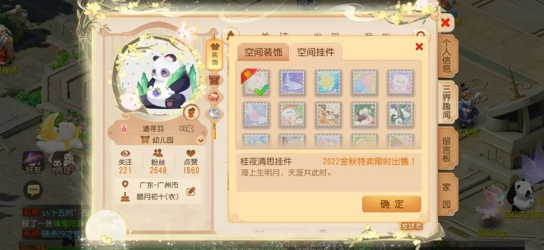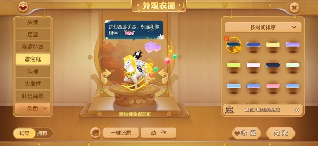 游戏里有各式各样的时装、坐骑、头像框、冒泡框、空间挂件、足迹等,能满足你的换装喜好。