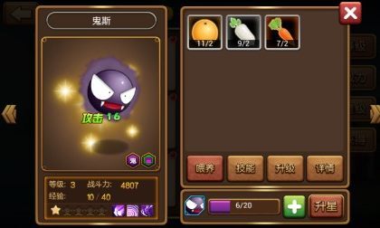小精灵的升级与升星 前面提到的都是提升战力的好方法,但核心关键还是小精灵自身的成长。小精灵既能通过参与战斗积累经验值来提升等级,也能借助天妇罗、寿司这类经验道具快速升级。而升星更是重中之重,它不仅能让小精灵获得大幅属性加成,还能提高其每级成长的属性收益,是提升战力的核心途径。
