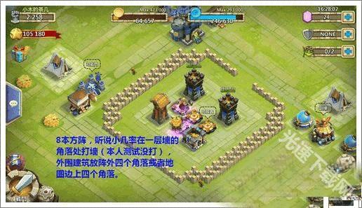 这个阵型外面的建筑这么摆放,既好看又能防被攻击,不过攻城的时候偶尔会出现卡兵的情况。