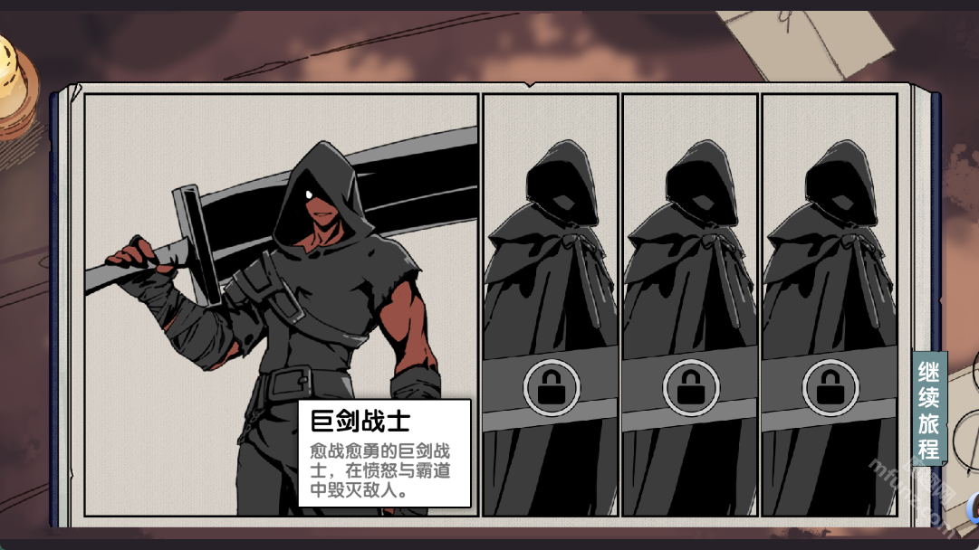 游戏开始时,我们仅能选择巨剑战士这一角色,选定他之后,我们便继续推进游戏进程。