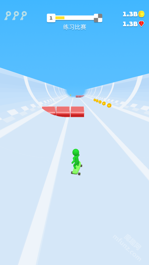 左右滑动角色,避开赛道上的障碍物,尽可能收集更多金币。