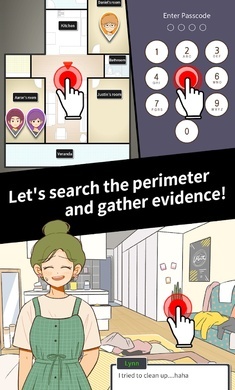 第二章:按流程前往张伟的房间,打开抽屉后翻找笔记本(包含两个线索),接着去张勇的房间,多点击几次,等张勇回来后躲到门后,然后立刻从张勇的房间出去。