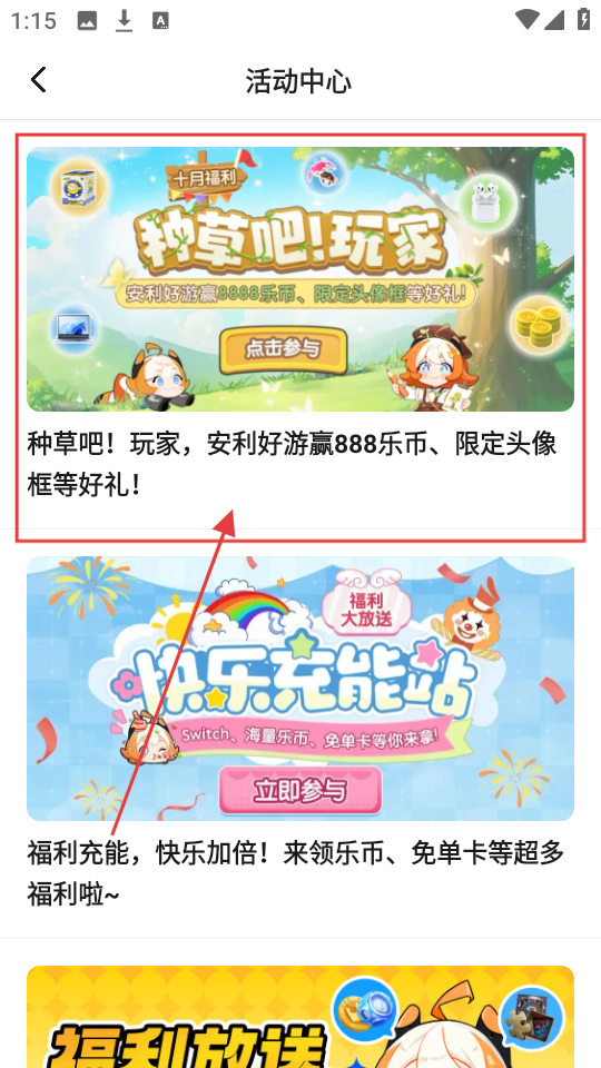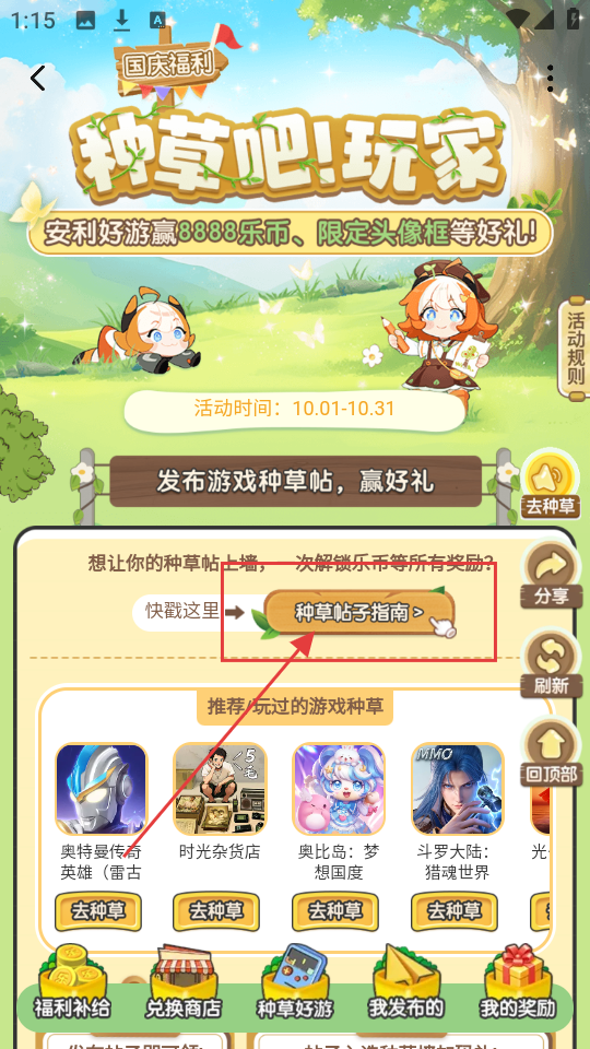 进入活动中心页面后,要是想参加“种草吧!玩家”活动,点击对应的活动入口,即可进入该活动页面。