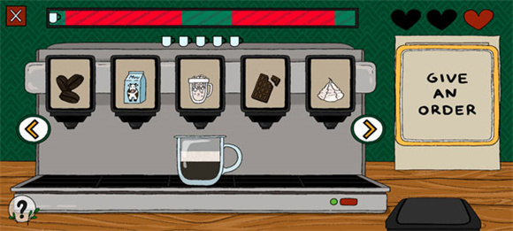 4、制作完成后,把做好的咖啡拖到卡片上,青蛙露露就能喝到它了。