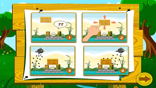 4、接下来进行实践操作:将木箱子放置在两只桶的中间位置,确认好位置后直接松开手,让蛋蛋被保护在箱子内部。