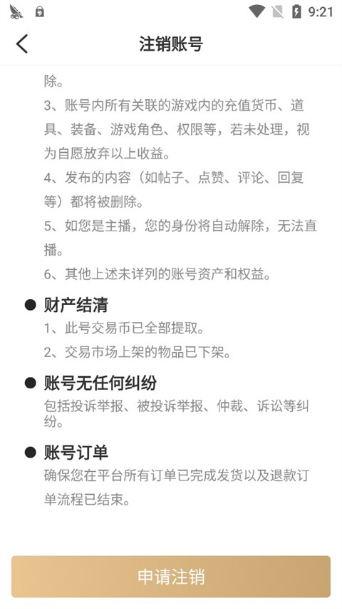 6、最后查看注销相关事项,点击“申请注销”按钮,按照页面操作提示完成后续步骤,即可完成注销流程。