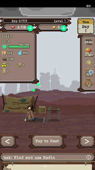 在辐射遍布、怪物肆虐的末日世界里,以点击互动的形式,在不同场景中搜集食物、水源、燃料之类的物资。