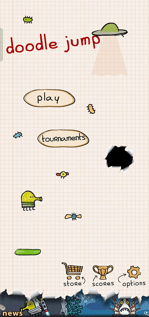 2、经典涂鸦风格,在平台间无尽跳跃,十分考验操作与技巧;