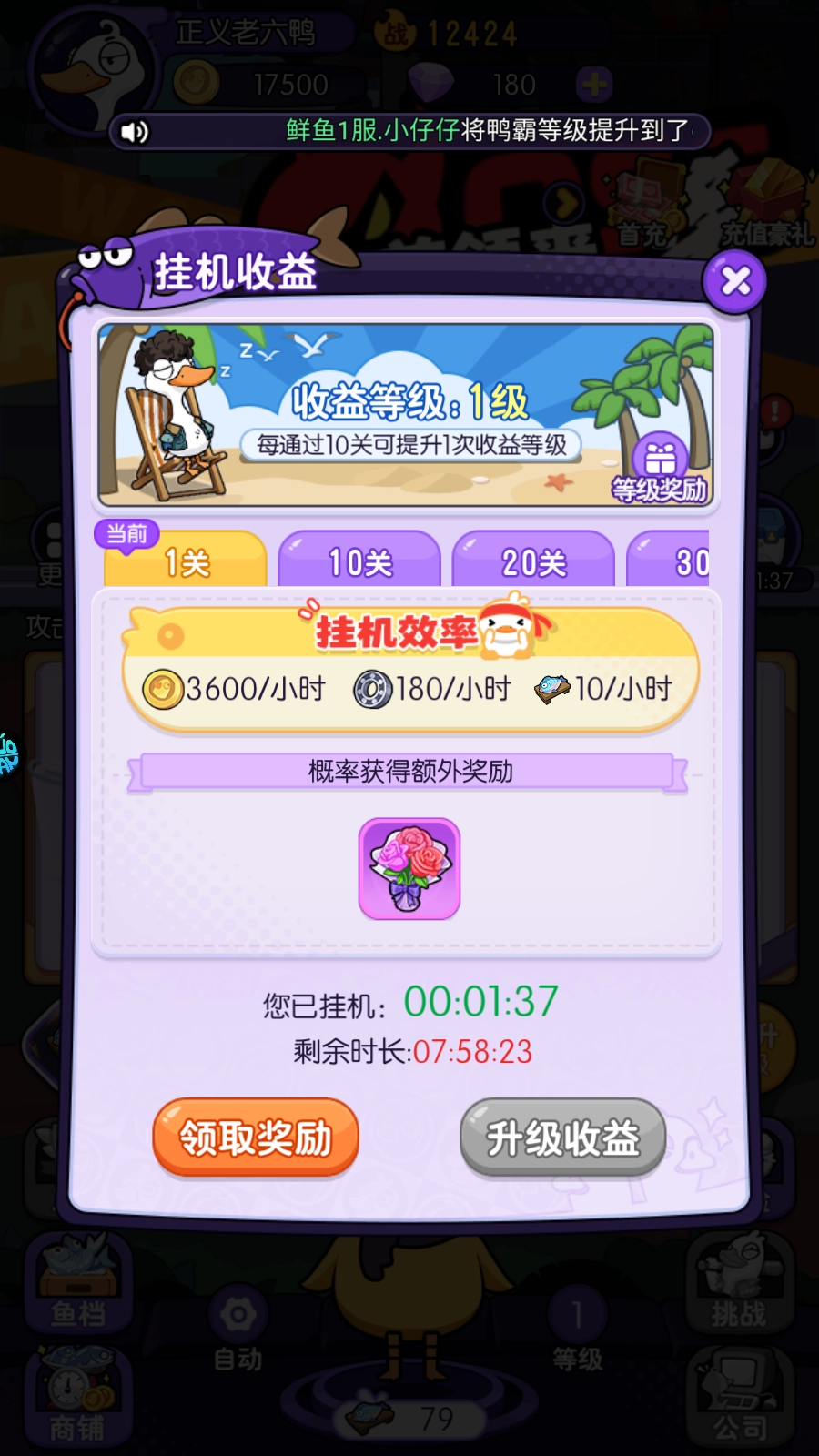 4、首次充值即可激活自动喂鸭功能,解放你的双手。