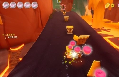 金币:在火山滑道行进到此处时,右侧会立刻出现一个蹦床,跳上去就能获取。