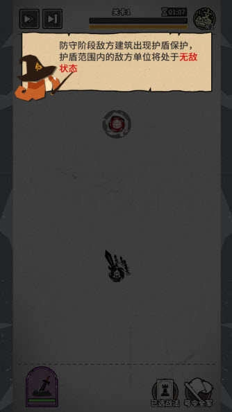 在防御阶段,敌方建筑会生成防护护盾,处于该护盾范围内的敌方单位将获得无敌效果。