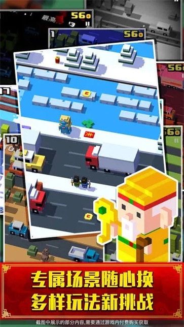 有一款经典的休闲闯关游戏,英文名是Crossy Road,它采用3D卡通像素风格,场景会随机变化。玩家在游戏里要操控一只因为赶时间而冒险过马路的可爱小动物,每移动一步就能得到一分,穿过的街道越多,分数就越高。此外,在过马路的过程中还能收集金币,这些金币可以用来解锁新的动物角色。