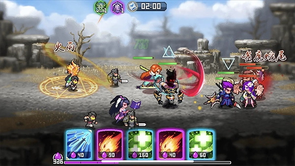 经典的横版即时制战斗模式,击破敌方灵阵取得胜利。