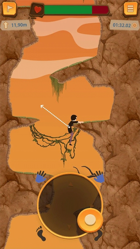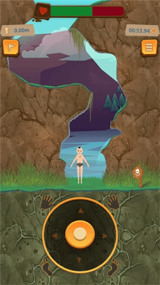 3、选择完成后就能正式进入游戏,借助下方的转盘来操控攀登者开展攀爬。