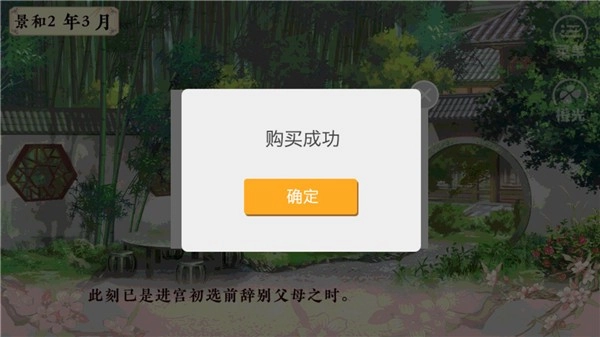 第十一个月(景和三年三月)时,先点击“传膳”选项。若想生育子嗣,有耐心的话可以反复操作以刷出多胞胎,没耐心的话则可通过存档读档来刷取15点好感度。之后前往长乐宫或御书房,后续行程可自行安排。