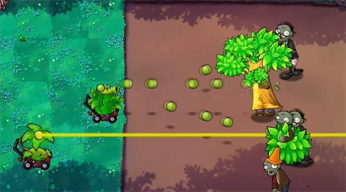2、依据植物类型的差异,会配备相应的攻击方式,植物会主动对攻击范围内的僵尸发起攻击;
