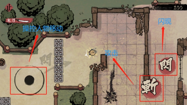4、游戏玩法,操控角色,攻击,闪现;
