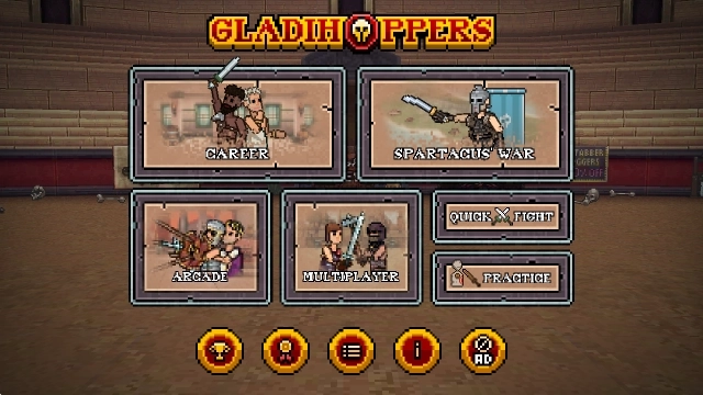 弹跳角斗士是一款像素风2D横版动作格斗游戏,背景设定在古罗马竞技场,玩家将化身角斗士投身热血对战。游戏结合近战与远程战斗机制,涵盖剑、斧、盾等多样武器装备组合,角色外观与战斗风格可由玩家自由定制。玩法模式丰富,包含快速战斗、职业模式以及“斯巴达克斯战争”战略模式,同时支持在线多人对战与本地分屏竞技。复古像素画面搭配丝滑的动作呈现,再加上充实的关卡设计与角色养成系统,为玩家打造出兼具策略深度与趣味体验的格斗盛宴。