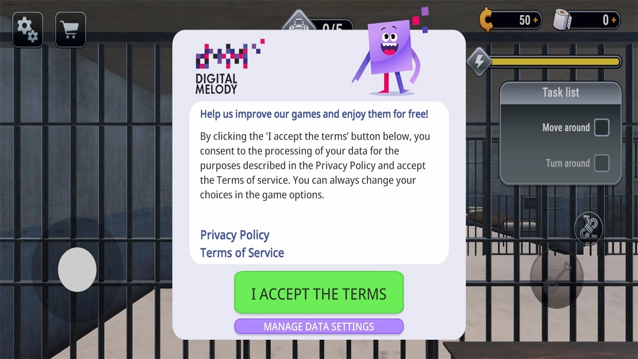 1、在本站安装越狱模拟器3d游戏,打开进入游戏后点击i accept the termes。