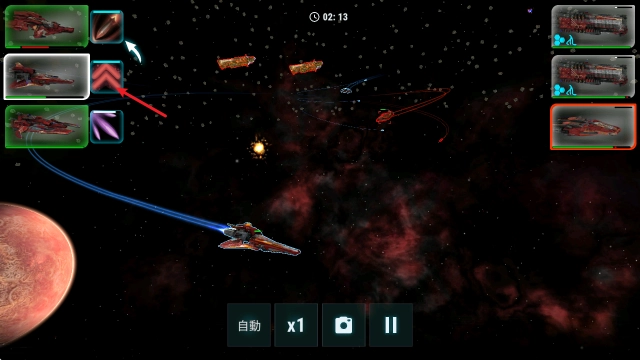2、战斗开始后,点击左侧按钮就能释放战舰的技能。