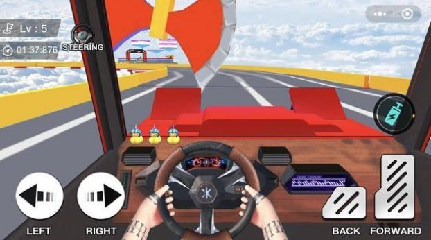 1、玩家可以以第一人称视角在各个赛道场景中进行冒险前进,逼真刺激的驾驶引擎音效给你最刺激好玩的驾驶过程;