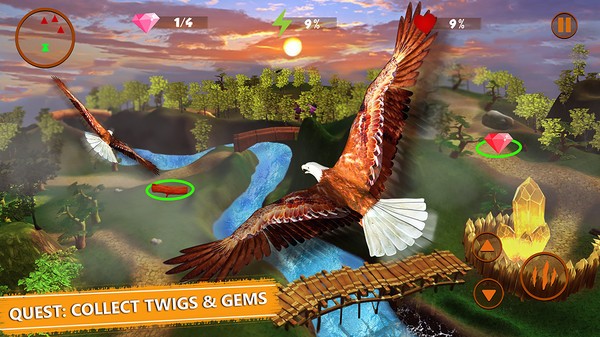 1.鹰鸟模拟器中超级郁郁葱葱的绿色环境和3D野生动物图形。