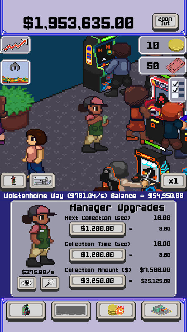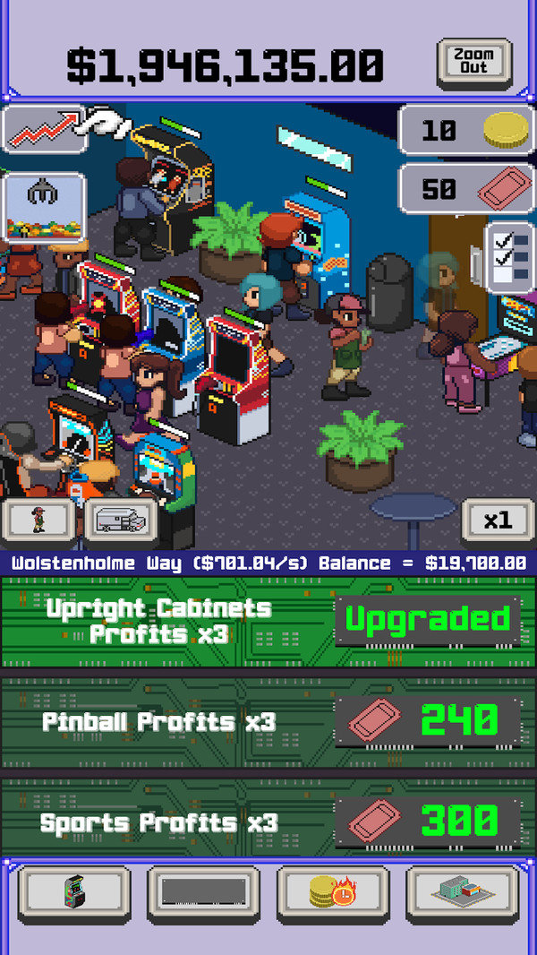 1、玩家可以去购买游戏机,让更多的人前来玩耍,获得更多钱;