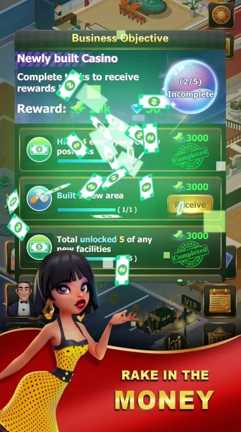1、在本作中经营一家赌场,你需要添加各种游戏设备,并且招募员工来帮你打理赌场生意;