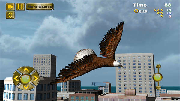 2、丰富的游戏场景,从野外到城市,再到金色的海滩,老鹰可以在水上捕食。