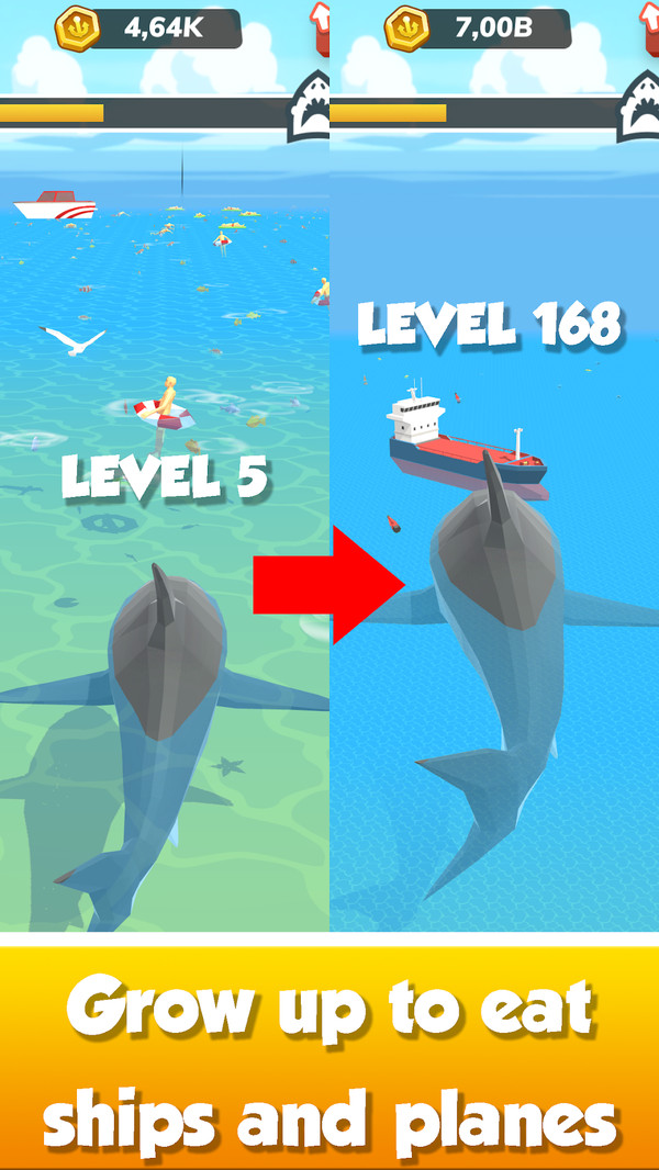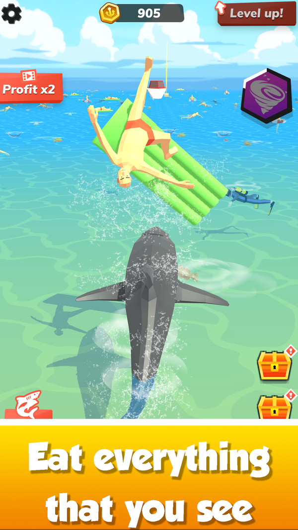 2、控制饥饿的白鲨,前往海洋,通过吃掉路上的所有食物来提高技能!