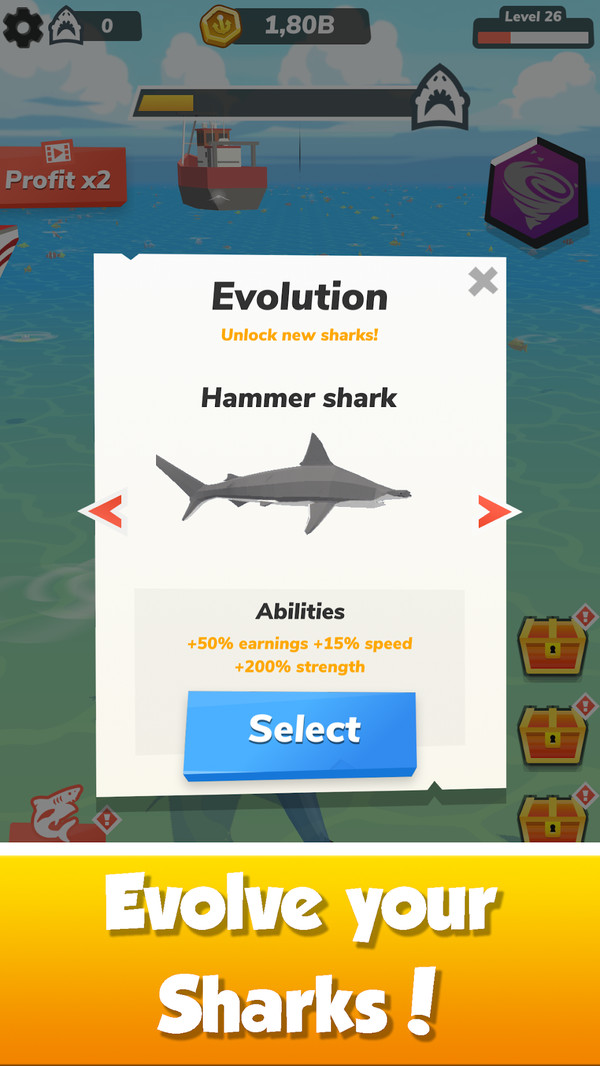 1、欢迎来到鲨鱼世界!这是一款带有鲨鱼模拟器元素的奇妙的空闲游戏。