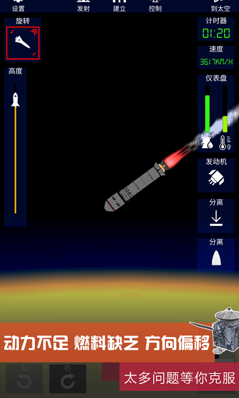 3、玩家要保证火箭燃料的充足,如果火箭在高空中用尽了燃料那将面对危险的后果。