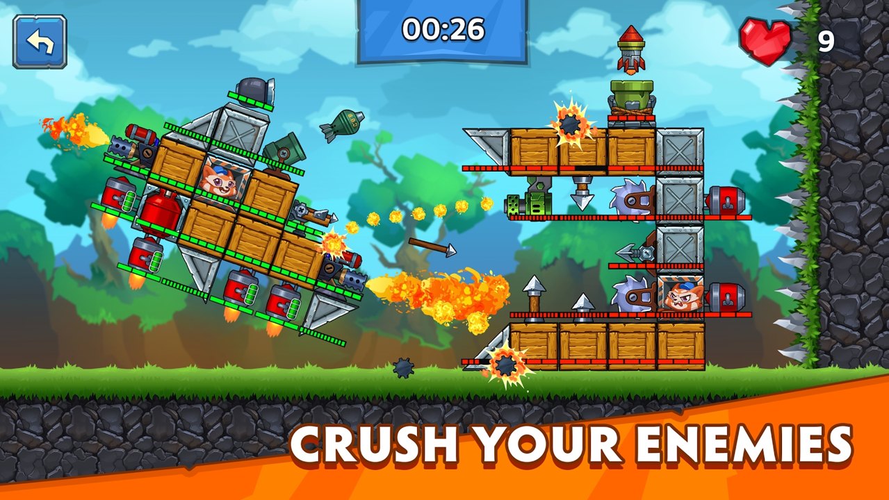 定制战车决斗是一款自己制作战车然后战斗的游戏,玩家可以使用游戏提供的各种工具和材料来制作一辆所向披靡的高级战车,在你的战车周围装备高杀伤力的炮台和武器能够更好的摧毁对手的车辆,玩家可以在游戏中尽情发挥想象力并享受刺激无比的战斗过程,感兴趣的小伙伴快来下载体验吧!