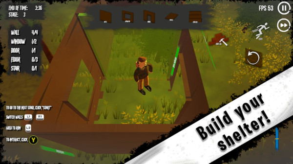 生火做饭收集材料食物,建造简易的木屋,让自己能够暂时安全地生存。