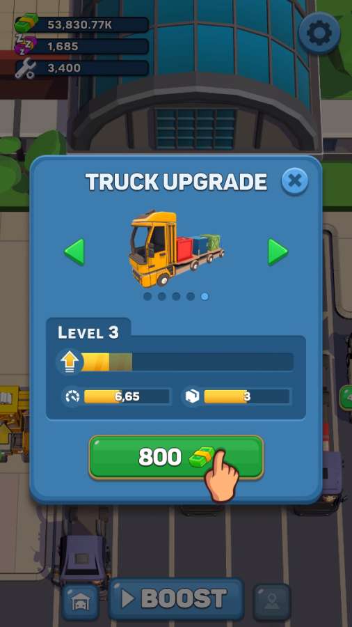 游戏的玩法非常轻松只要用手指点点点就行了,花费金币升级你的卡车就能够更好的完成运输任务,保障每次运输的顺利收获大量金钱。