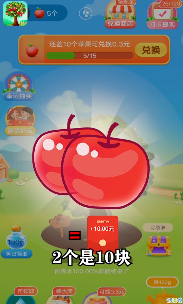 2.水果成熟你就能兑换相应的红包,除了获得红包,您还可以免费获得水果。
