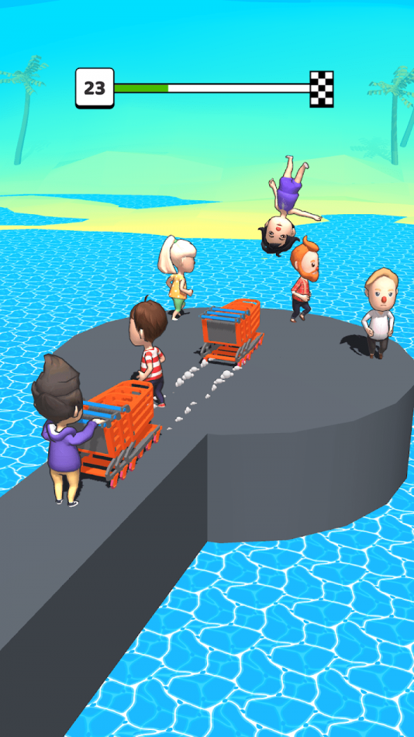 购物大乱斗是一款非常休闲的游戏,购物大乱斗是一款精彩的多人竞技运动,里面会有一个小小的台面站着很多对手,周围都是蓝蓝的海水,大家首先要保证的就是自己不被调入进去,会有人推着一排排的购物车来到中间,喜欢这类型就来体验一下吧!