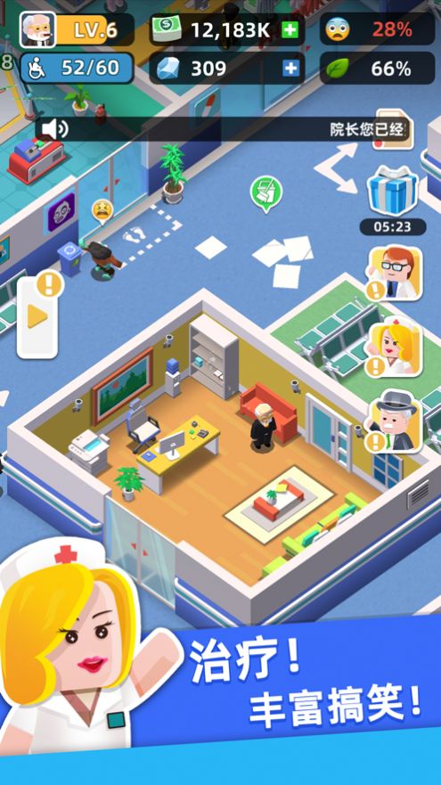 2、解锁自己的医院等级,招募多多的员工,处理各种问题.