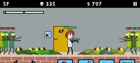 2、各种各样的武器可以解锁使用,当你成功击杀僵尸后,就能获得金币,用来购买子弹和其他道具;