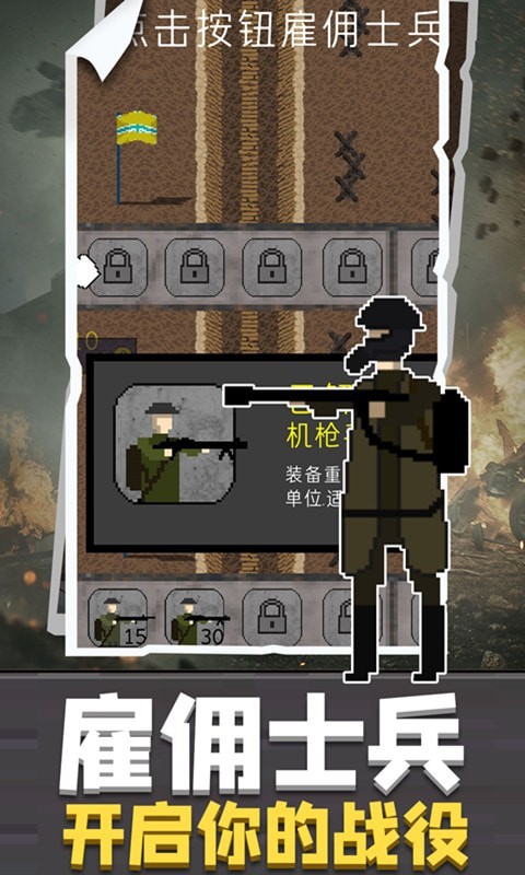 在游戏中玩家雇佣不同的大兵射击,抵御敌人的攻击。