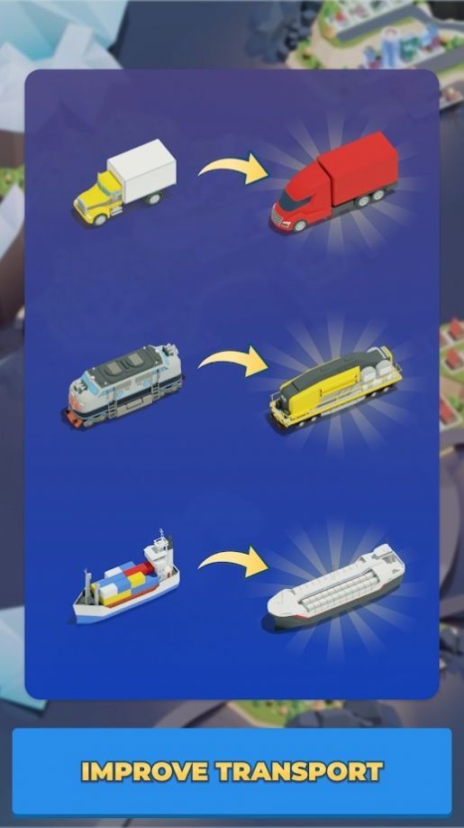 空闲交付城市大亨是一款模拟经营类手游,在游戏中你要做的就是发展城市中贸易物流行业,在这里有各种不同的运输工具,从卡车到轮船到飞机,游戏中将现实中物流运行完美的模拟到了游戏中,将你物流行业流通至城中的每一个角落,感兴趣的小伙伴来下载尝试吧。