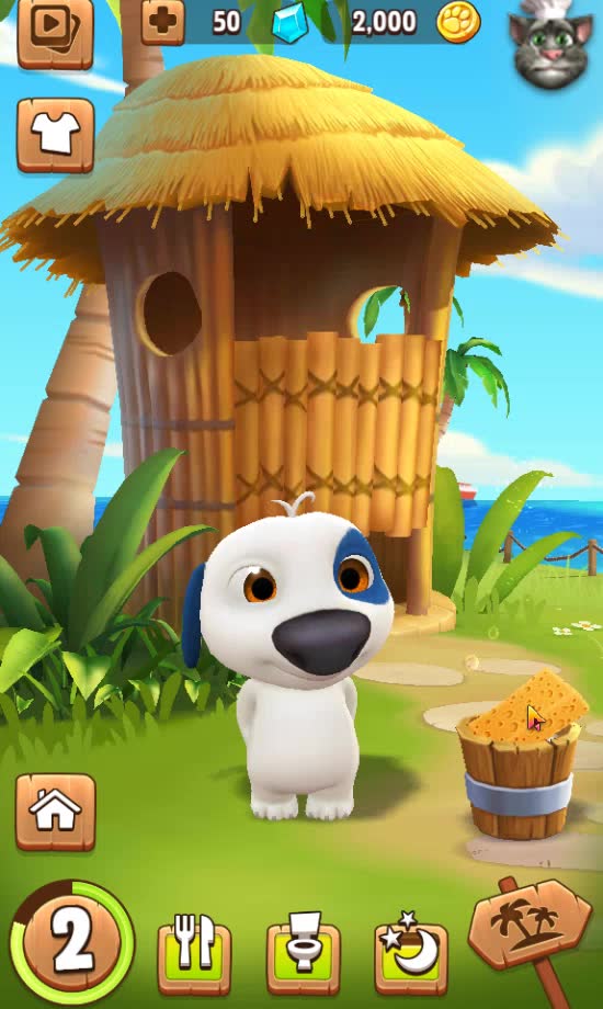 1、首先刚开始进入游戏,我们要对汉克狗发出一系列指令,比如给他喂食、大小便、睡觉等。这部分大家按照提示来完成即可。