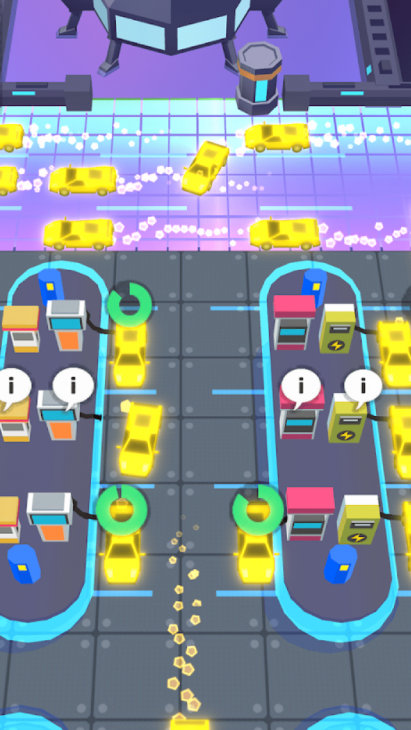 1、精美的卡通动画,趣味放松的放置玩法,为汽车加油,赚取金币