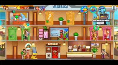 家族旅店游戏采用的卡通的画风,在这里还有各种有趣的道具能帮助你快速的整理打扫酒店的卫生哦。