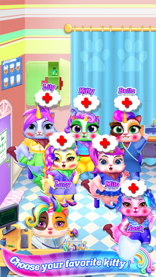 独角兽猫咪中会有很多的喵都很时尚,而且你除了帮助它们解决口腔问题还可以给它们进行打扮参与各种活动!