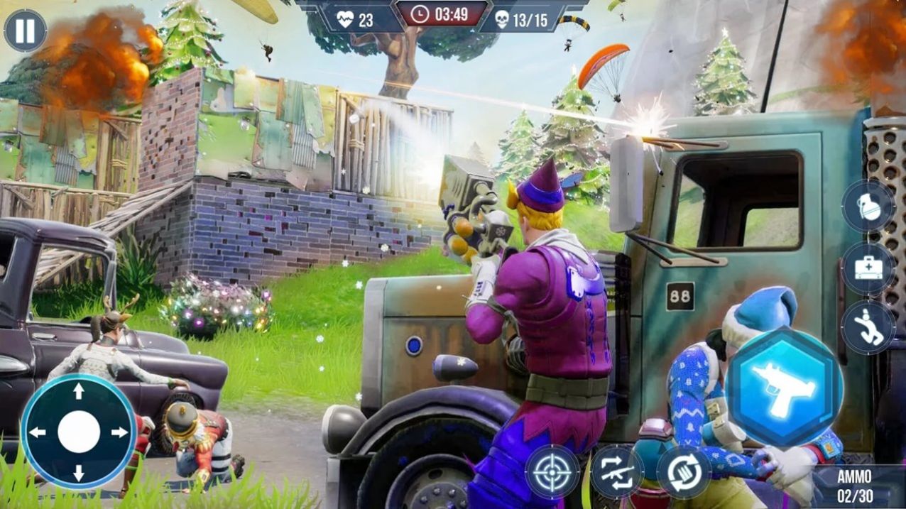 1、游戏画面清晰流畅,提供来自世界各地的玩家同场竞技,你将自由选择战斗场景和各种武器;