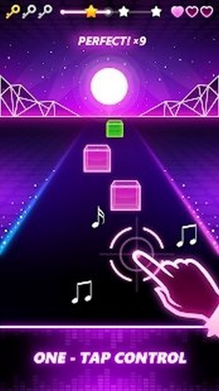3、可以自由选择音乐加入游戏,根据不同的节奏来完成挑战,完美的命中游戏中的音符