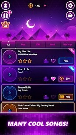 收集更多不同的新歌,提高你的节奏训练,不断提高你的极限反应速度。
