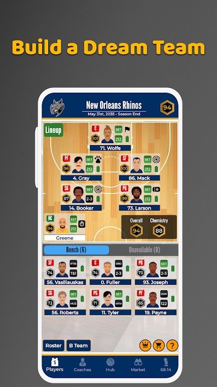 组建篮球梦之队这款游戏是一款非常受欢迎的篮球模拟游戏,玩家可以在这里招募优秀的篮球运动员,成立你的篮球俱乐部。各种游戏模式可以为玩家提供训练,各种剧情模式和商业玩法可以带领玩家训练玩家,聘请教练。操作简单,使用方便,也可以参加篮球比赛,自己参加体育比赛。有兴趣的朋友可以下载体验一下!