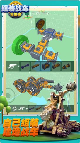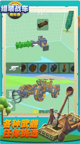 这款组装战车模拟器内玩家可以利用各种零件组装不同类型的战车,每一种战车都是有着不同的功能,玩家只需要不停的赚取金币领取奖励